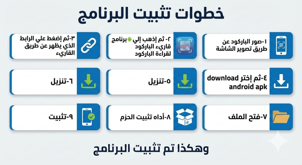 (يتم تسليم التطبيق عبر بريد إلكتروني مع باركود، يتبعه التثبيت).
